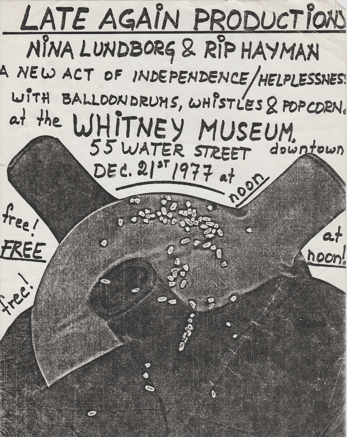 Balloons played as musical instruments with amplified popcorn for dance by Nina Lundborg * Whitney Museum * Lyndon State College, Vermont