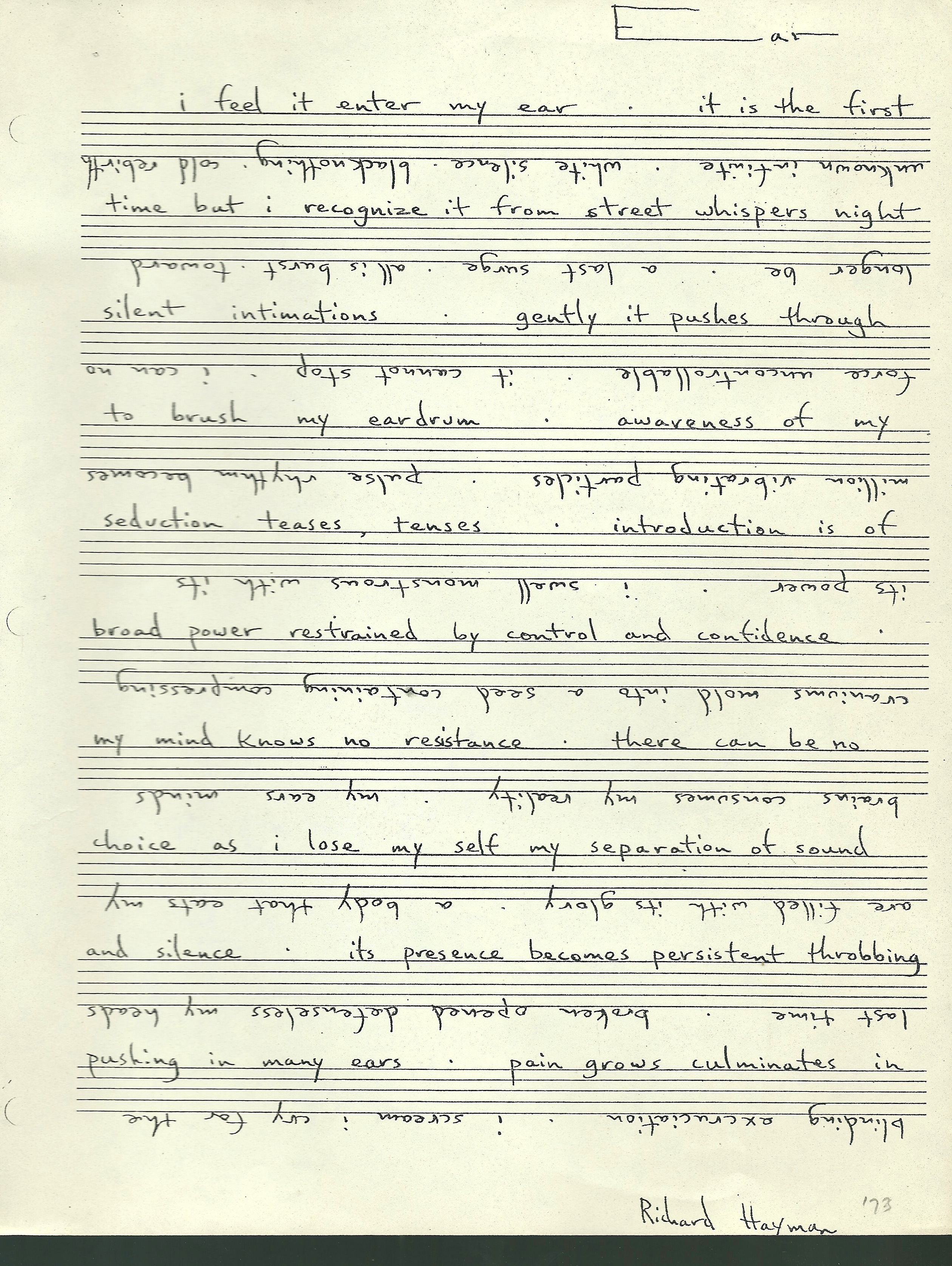 Words on loose strip music staves.