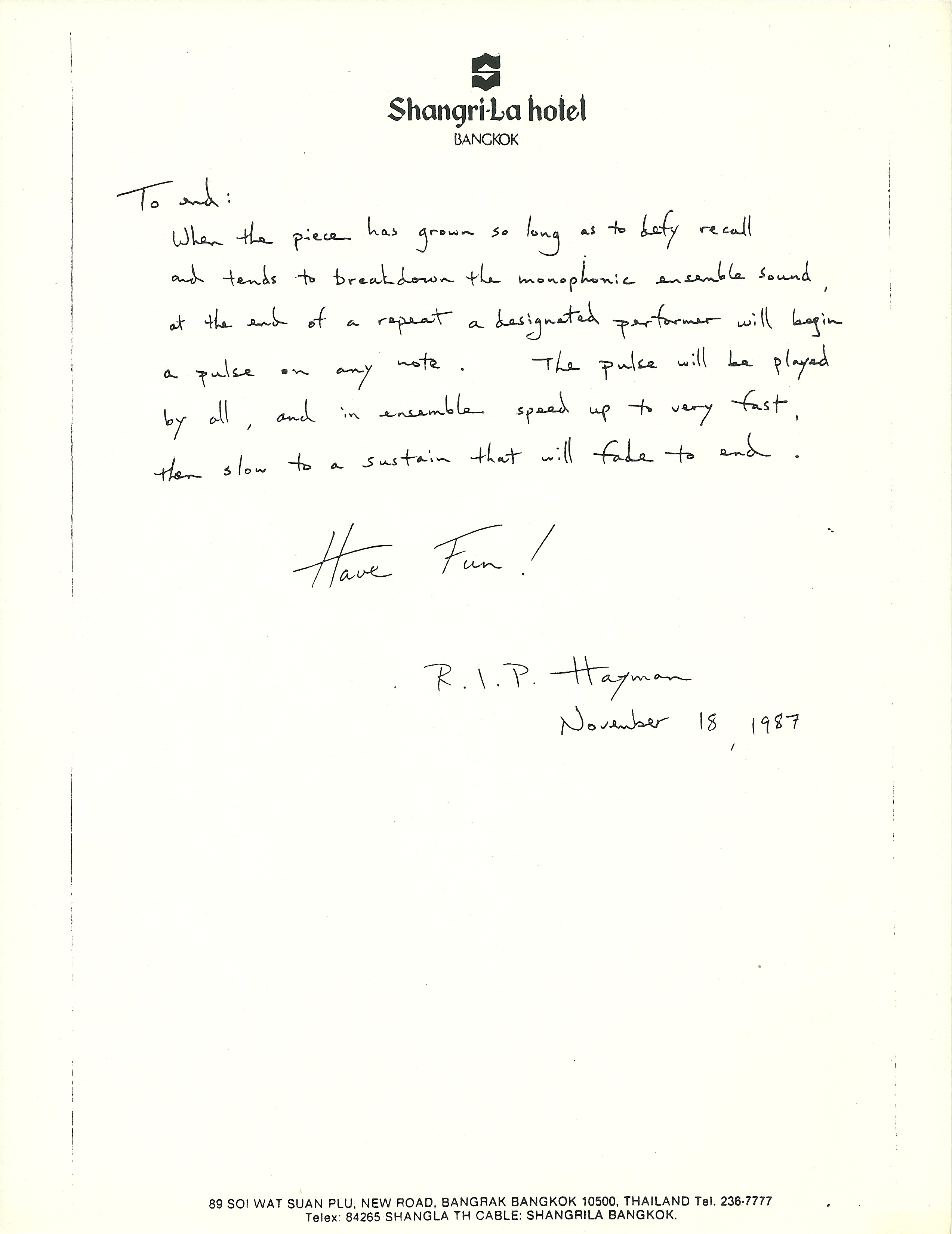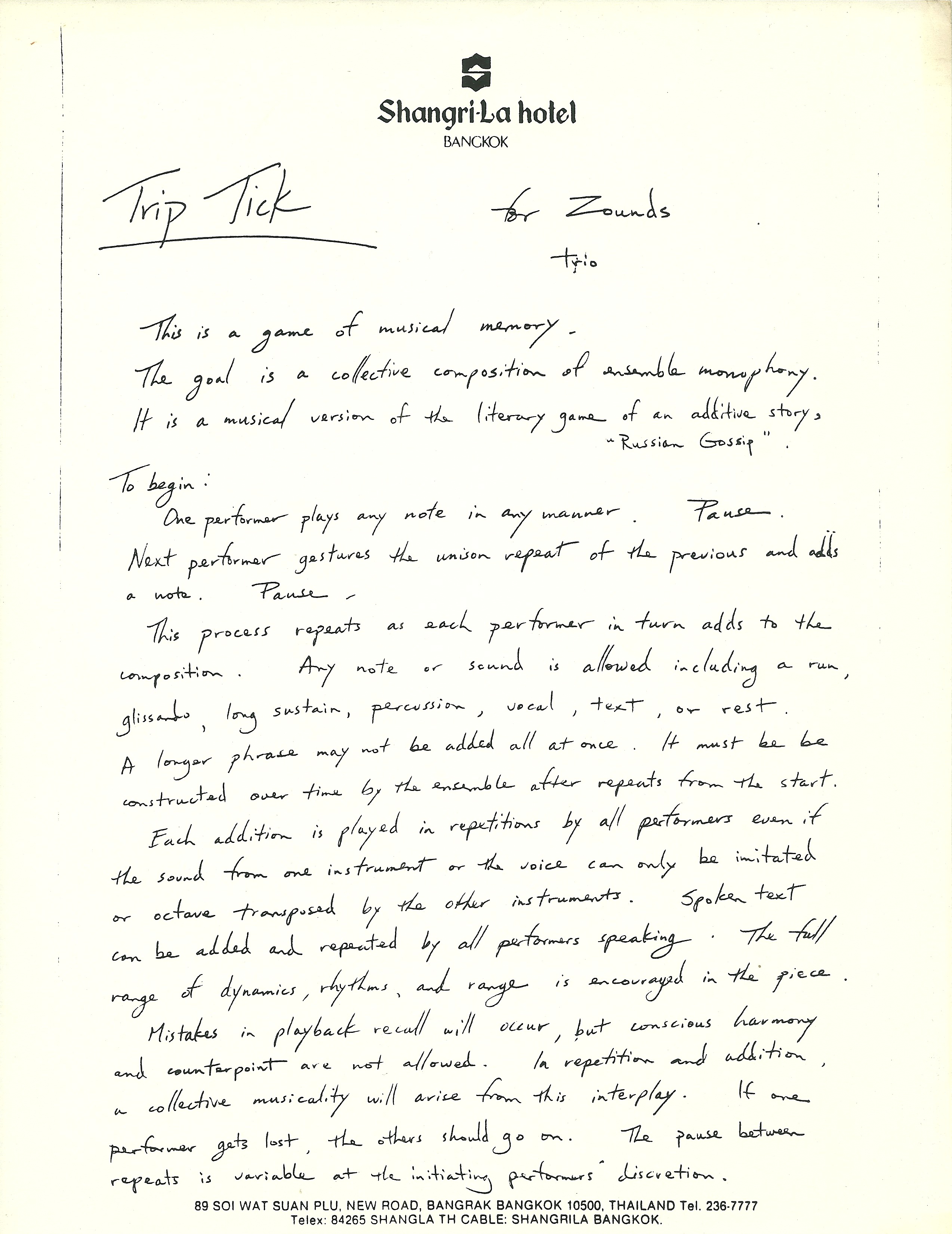 A musical game version of “Russian Gossip” for any small ensemble. Commissioned by Zounds Ensemble.